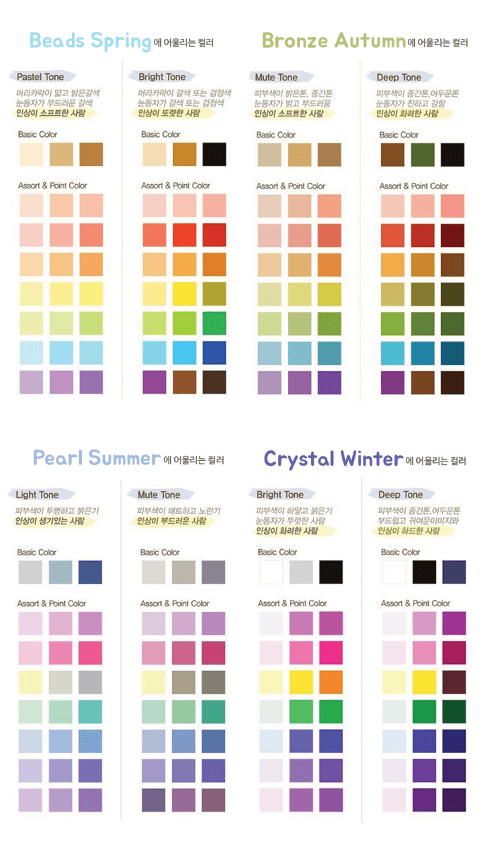 퍼스널 컬러 분석은 개개인의 피부톤과 컬러 특성을 고려하여 어울리는 컬러를 찾아내는 과정입니다. 주로 웜 톤과 쿨 톤으로 나뉘며, 여기에 봄, 여름, 가을, 겨울과 같은 시즌 개념을 추가하여 퍼스널 컬러를 식별합니다.